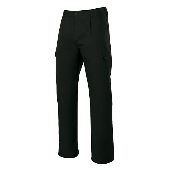 Arbetskläder byxor med sidfickor. 98% Bomull, 2% Spandex. Två sidofickor med metalllås - Elastisk midja.