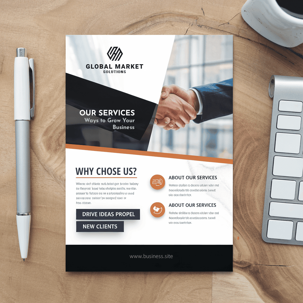 - Mångsidiga företagsflygblad för att visa upp dina tjänster.