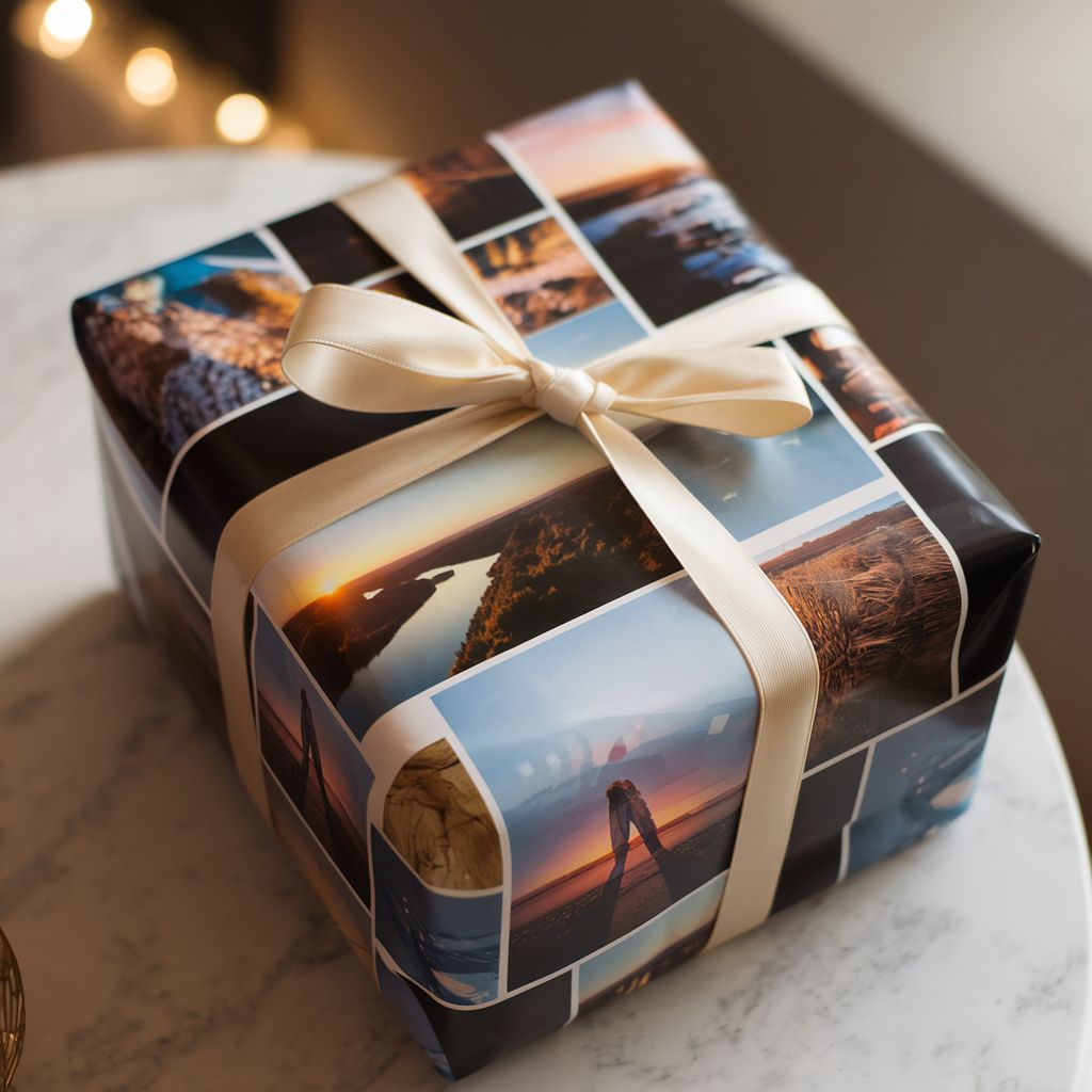 Inslagspapper med anpassade foton eller designer. Perfekt för personlig presentinslagning och speciella tillfällen. Perfekt för födelsedagar, helgdagar och bröllop.