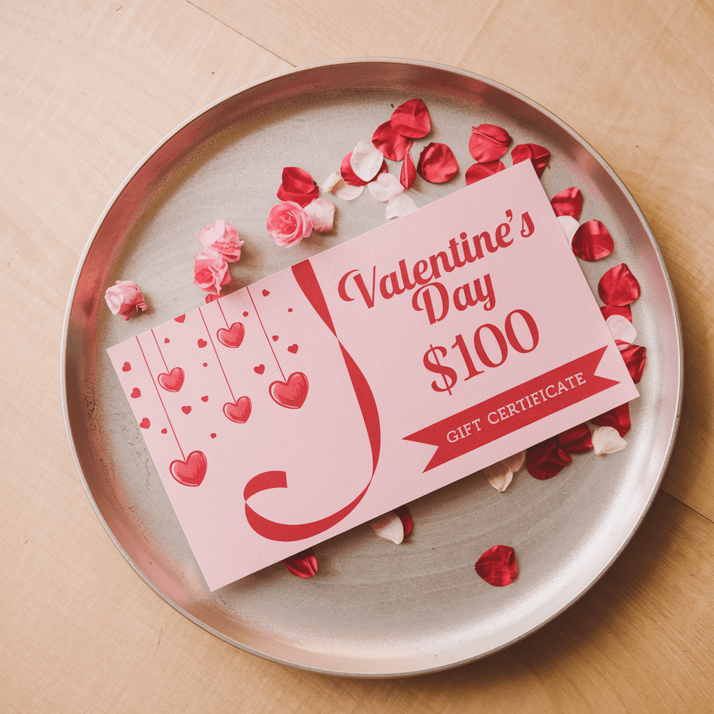 Anpassade presentkort för Alla hjärtans dag gåvor. Perfekt för att skapa kampanjer och specialerbjudanden med kärlekstema. Idealiskt för återförsäljare, restauranger och serviceföretag.